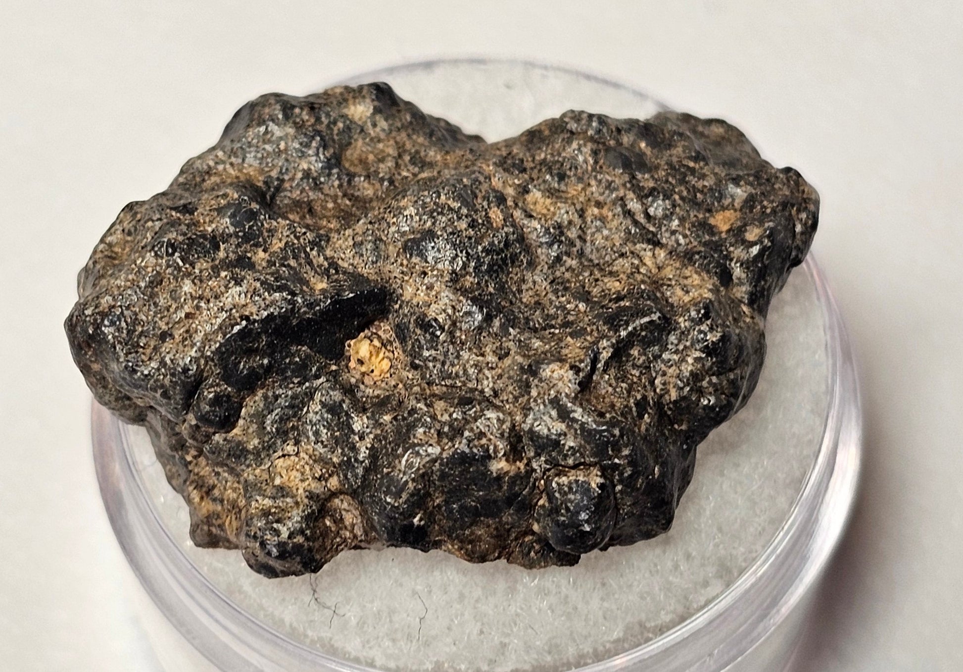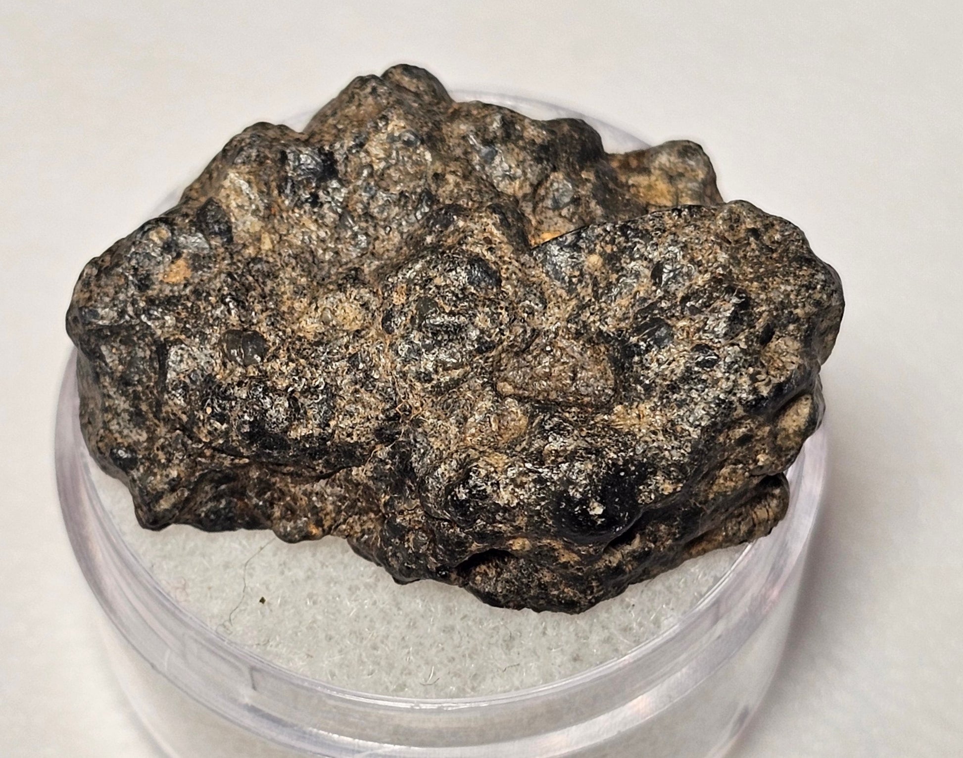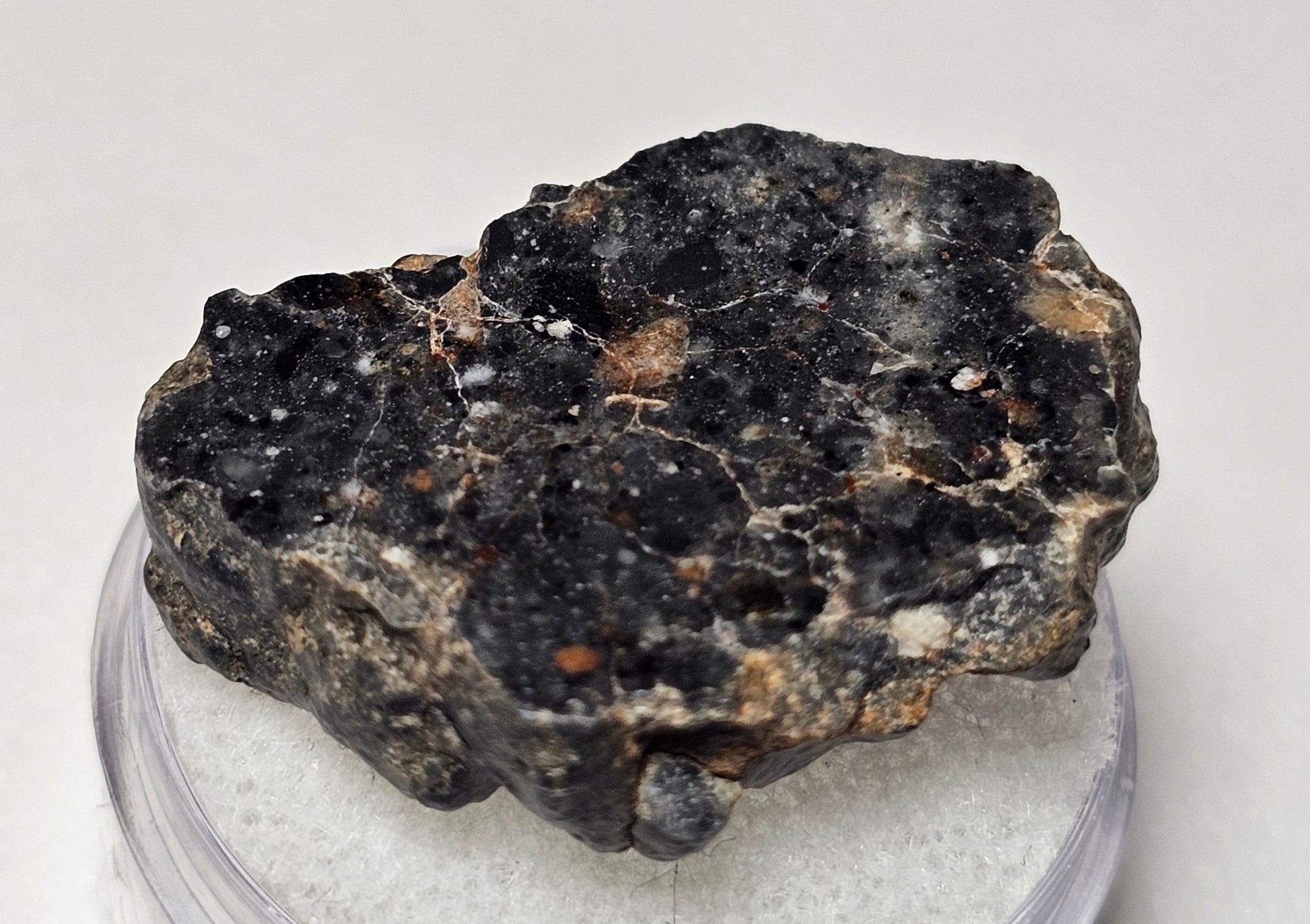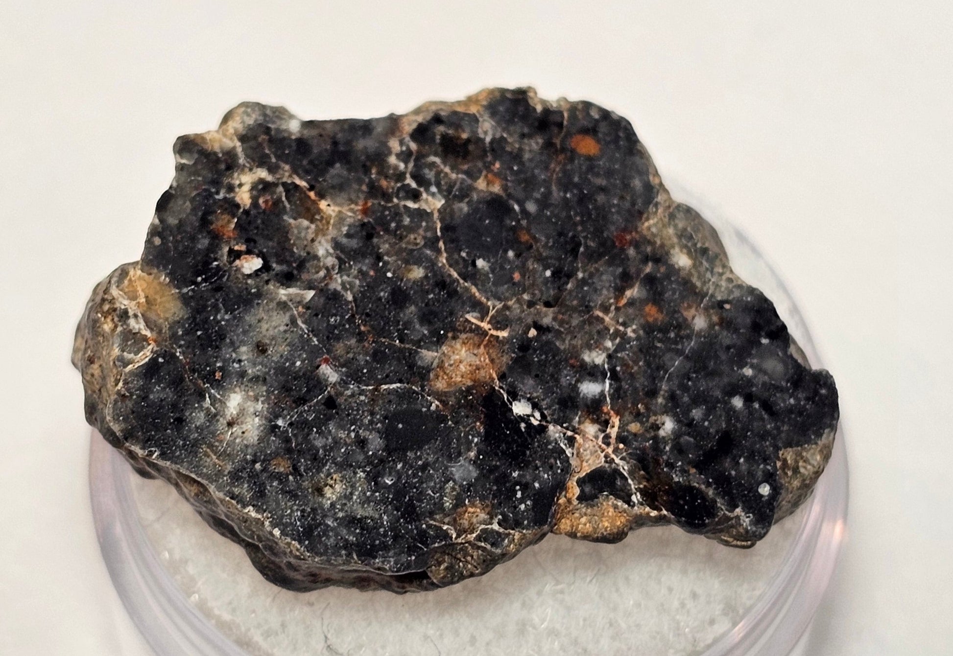This is a lunar meteorite by the name of Bechar 003. It has been classified, cleaned, cut & polished. It was discovered in Algeria in 2022. It's a feldspathic breccia but some of these lunar meteorites were found to contain a lot of iron flakes. Usually, to see metal in lunar is rare. Only about 2 kilos of material were recovered. Like all of my meteorites, this piece comes with a certificate of authenticity as well as an information card about Bechar 003.