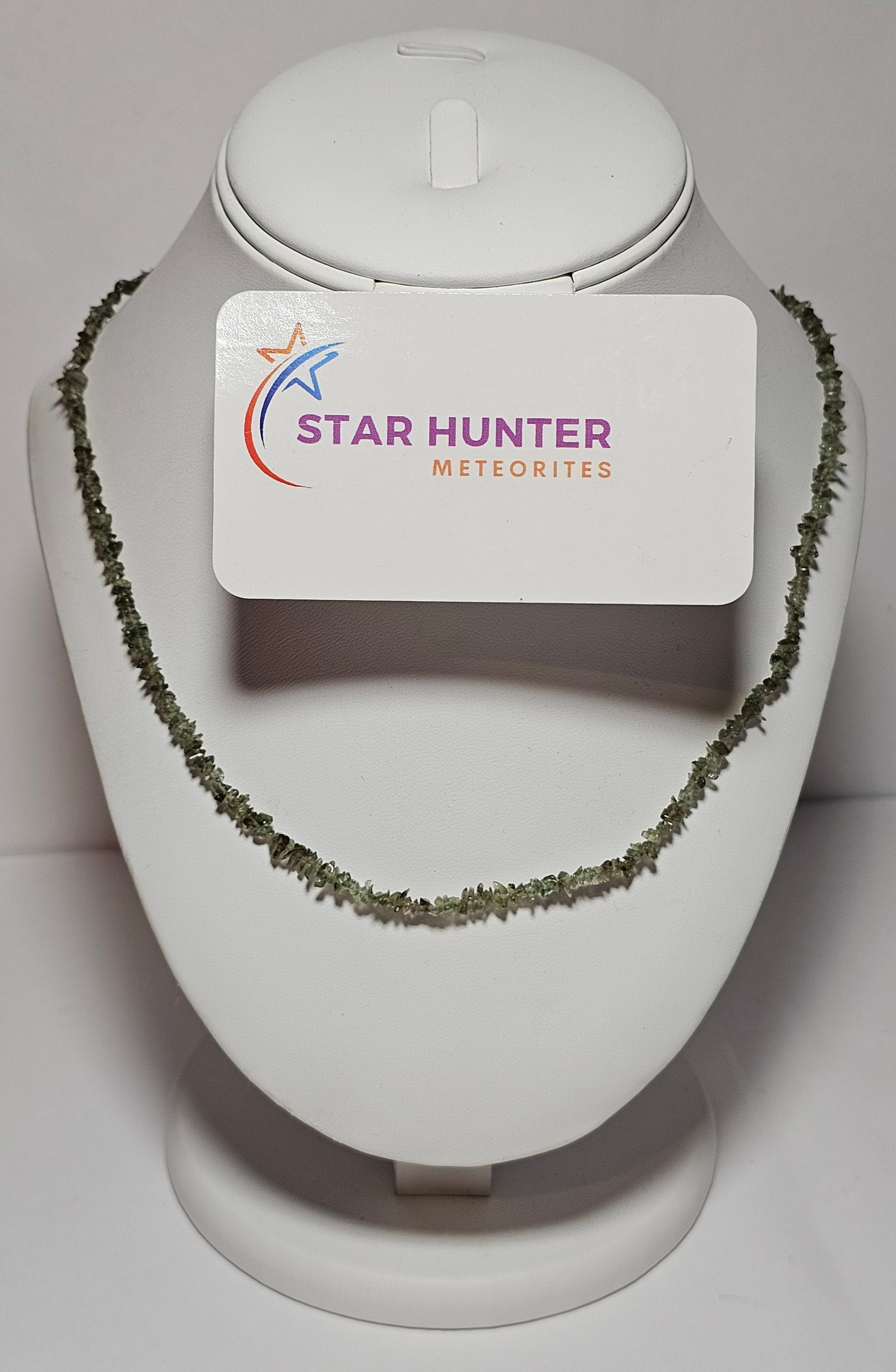 This is a beautiful, adjustable Moldavite necklace. It is 100% real, natural Moldavite and each bead is hand cut. Moldavite is only found in the Czech Republic. There are many fakes out there and due to the extremely high cost of Moldavite, there are many people trying to manufacture it out of green glass. I always tell my customers if they have any doubt, take it to a certified jeweler (not a geologist) because Moldavite is a gemstone. Any certified gemologist will be able to tell you if it's real or not. Moldavite has become very hard to get. There are only a few families/companies that supply the entire world. However, over the last few years it has been very hard to get. They have been mining it for years and it's finally running out. Some of the areas where they know there's more are now protected by the government, making it illegal to harvest.