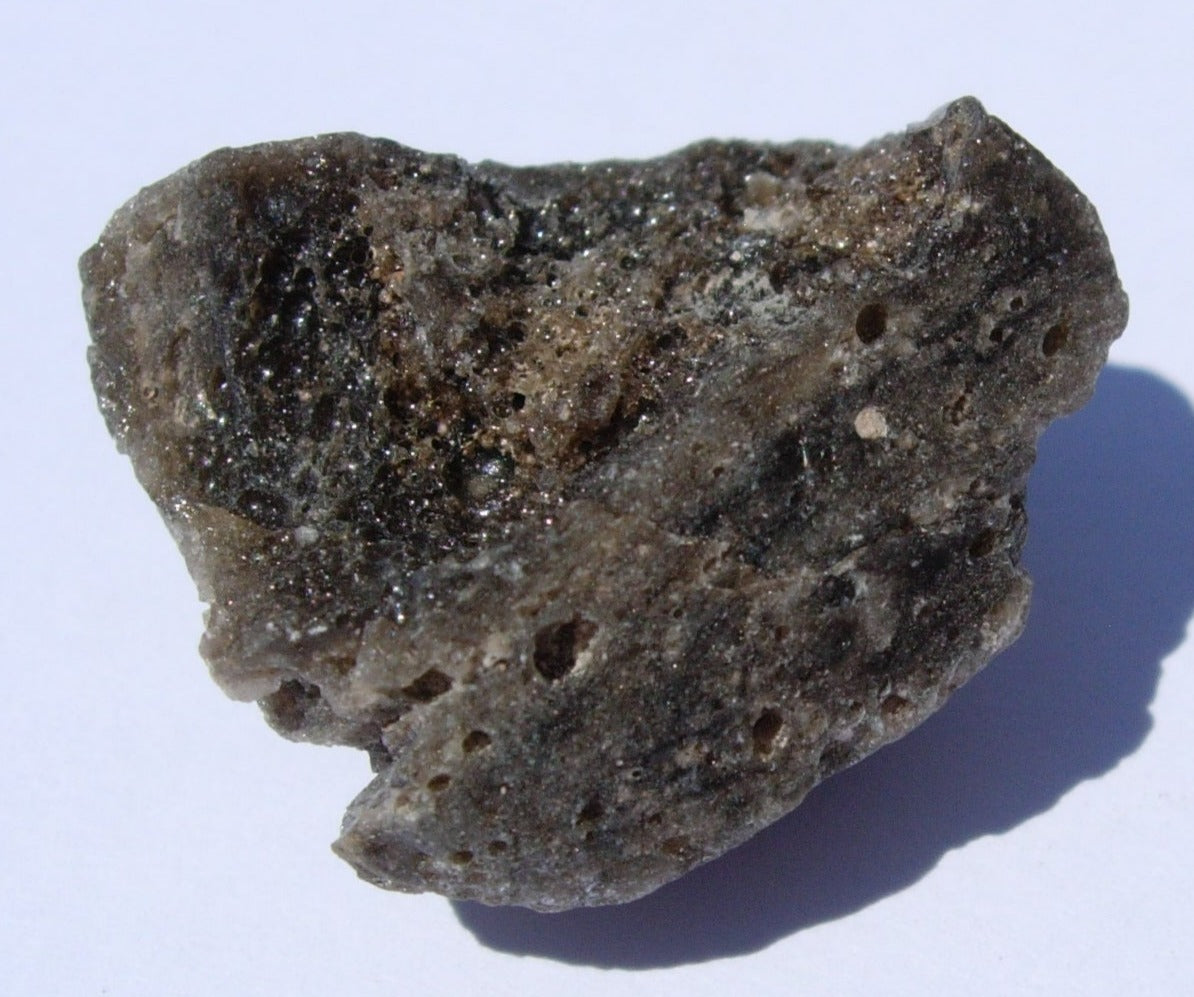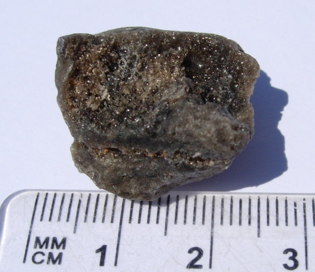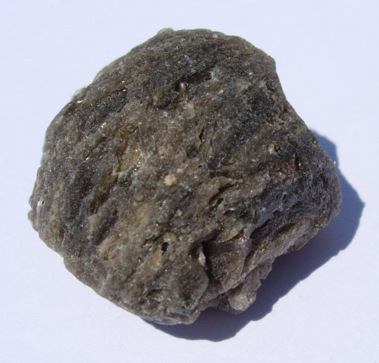 Darwin glass is an impactite. It’s a glass made up of a part of the earth’s crust that melted when an iron meteorite crashed into western Tasmania almost one million years ago. This impact generated a large amount of energy (enough to melt the crust, picture probably the equivalent of several atomic bombs), and created the Darwin Crater. Many craters around the world have glass which formed from the heat of the impact. But, the Mount Darwin Crater has glass which is quite different. Instead of being a black glass it is a grayish green. It is found with folds and twists as well as masses the look like large drops. Darwin glass is truly one of the most interesting of the impact melt glasses available to collectors.