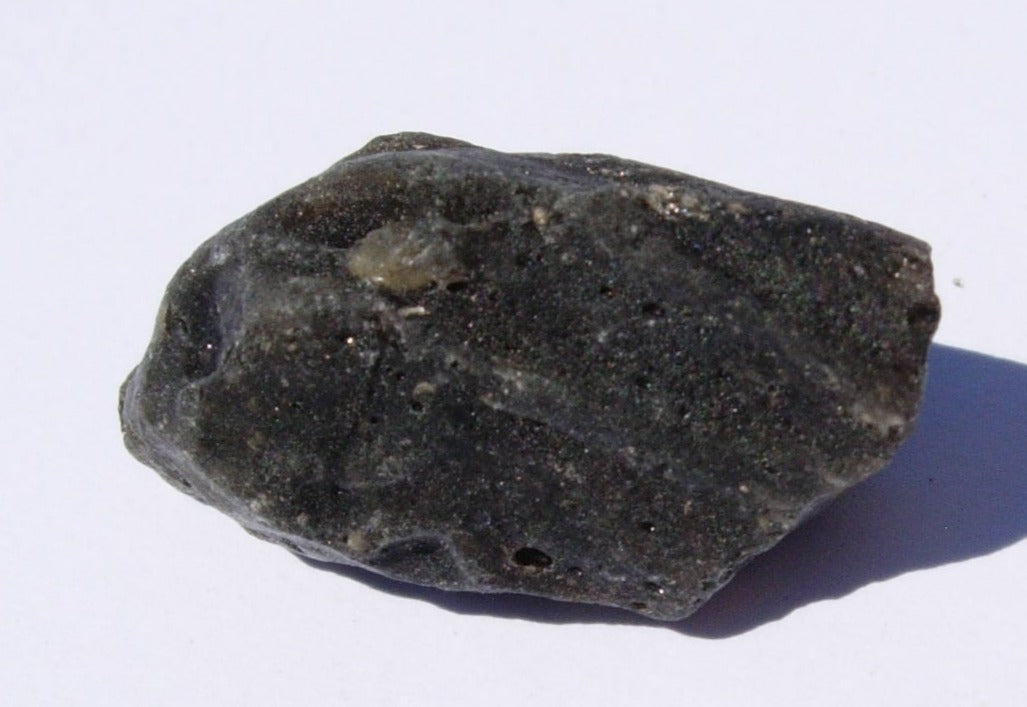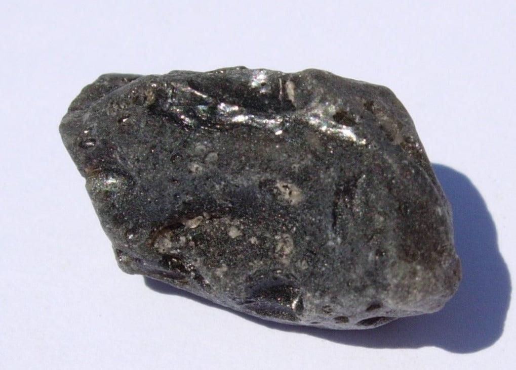 Darwin glass is an impactite. It’s a glass made up of a part of the earth’s crust that melted when an iron meteorite crashed into western Tasmania almost one million years ago. This impact generated a large amount of energy (enough to melt the crust, picture probably the equivalent of several atomic bombs), and created the Darwin Crater. Many craters around the world have glass which formed from the heat of the impact. But, the Mount Darwin Crater has glass which is quite different. Instead of being a black glass it is a grayish green. It is found with folds and twists as well as masses the look like large drops. Darwin glass is truly one of the most interesting of the impact melt glasses available to collectors.