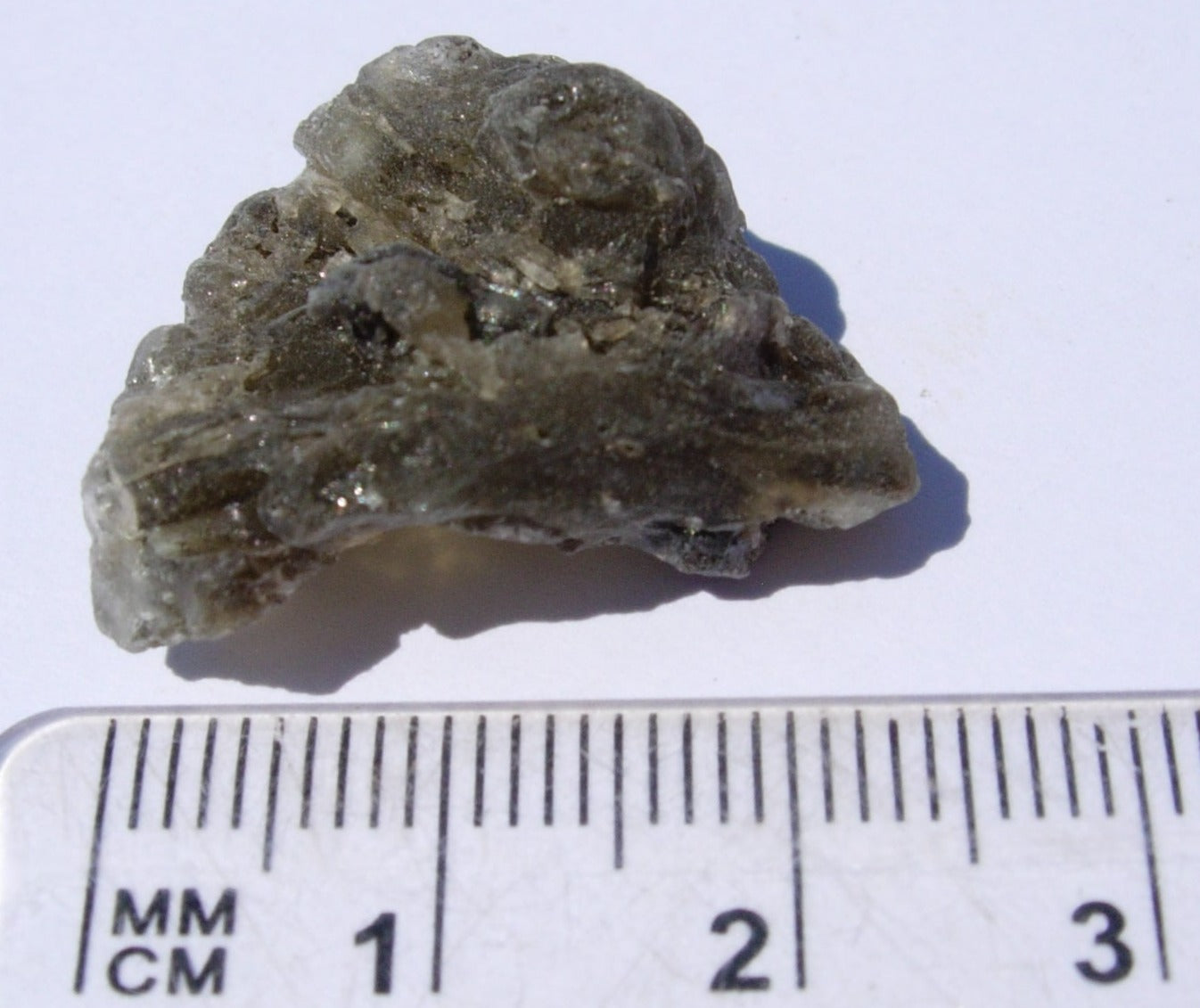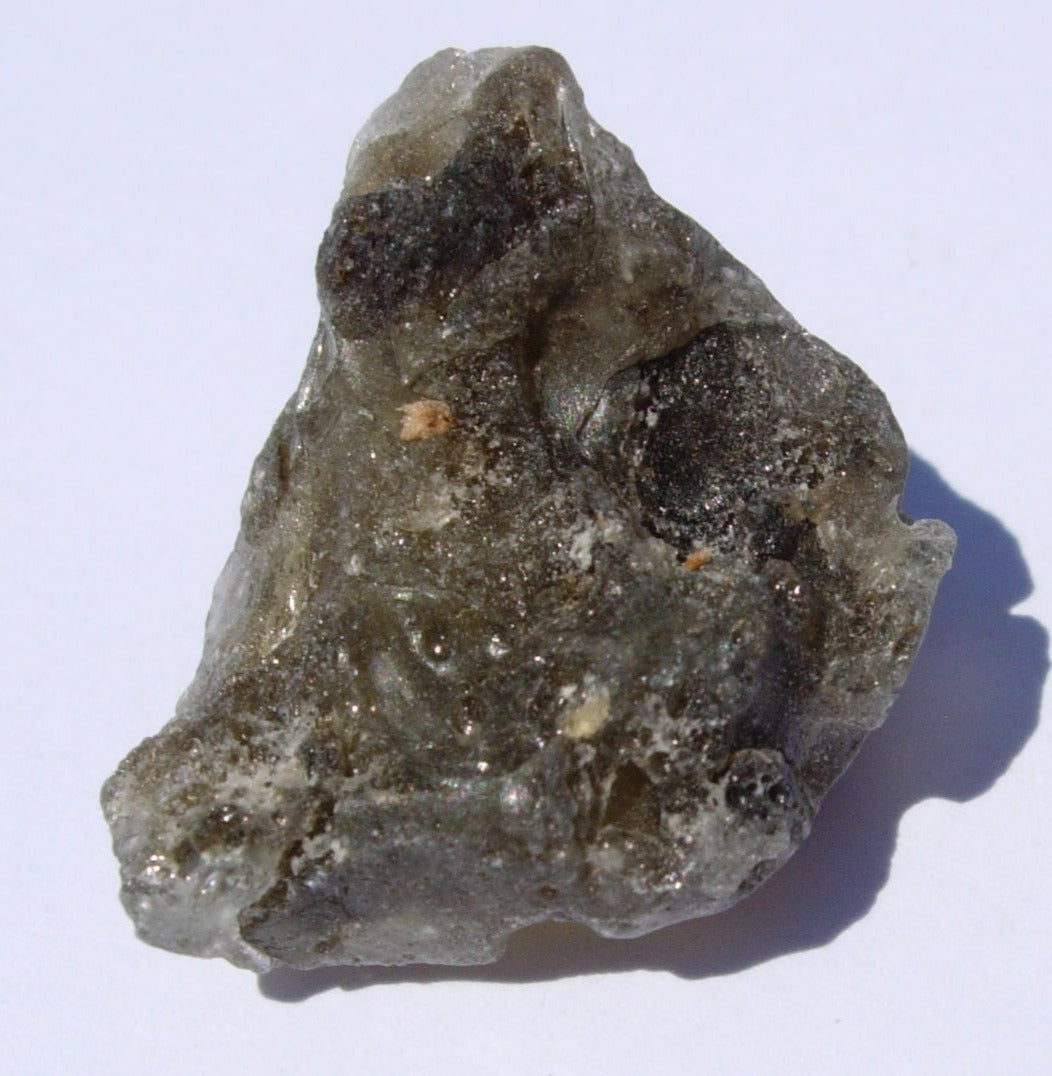 Darwin glass is an impactite. It’s a glass made up of a part of the earth’s crust that melted when an iron meteorite crashed into western Tasmania almost one million years ago. This impact generated a large amount of energy (enough to melt the crust, picture probably the equivalent of several atomic bombs), and created the Darwin Crater. Many craters around the world have glass which formed from the heat of the impact. But, the Mount Darwin Crater has glass which is quite different. Instead of being a black glass it is a grayish green. It is found with folds and twists as well as masses the look like large drops. Darwin glass is truly one of the most interesting of the impact melt glasses available to collectors.