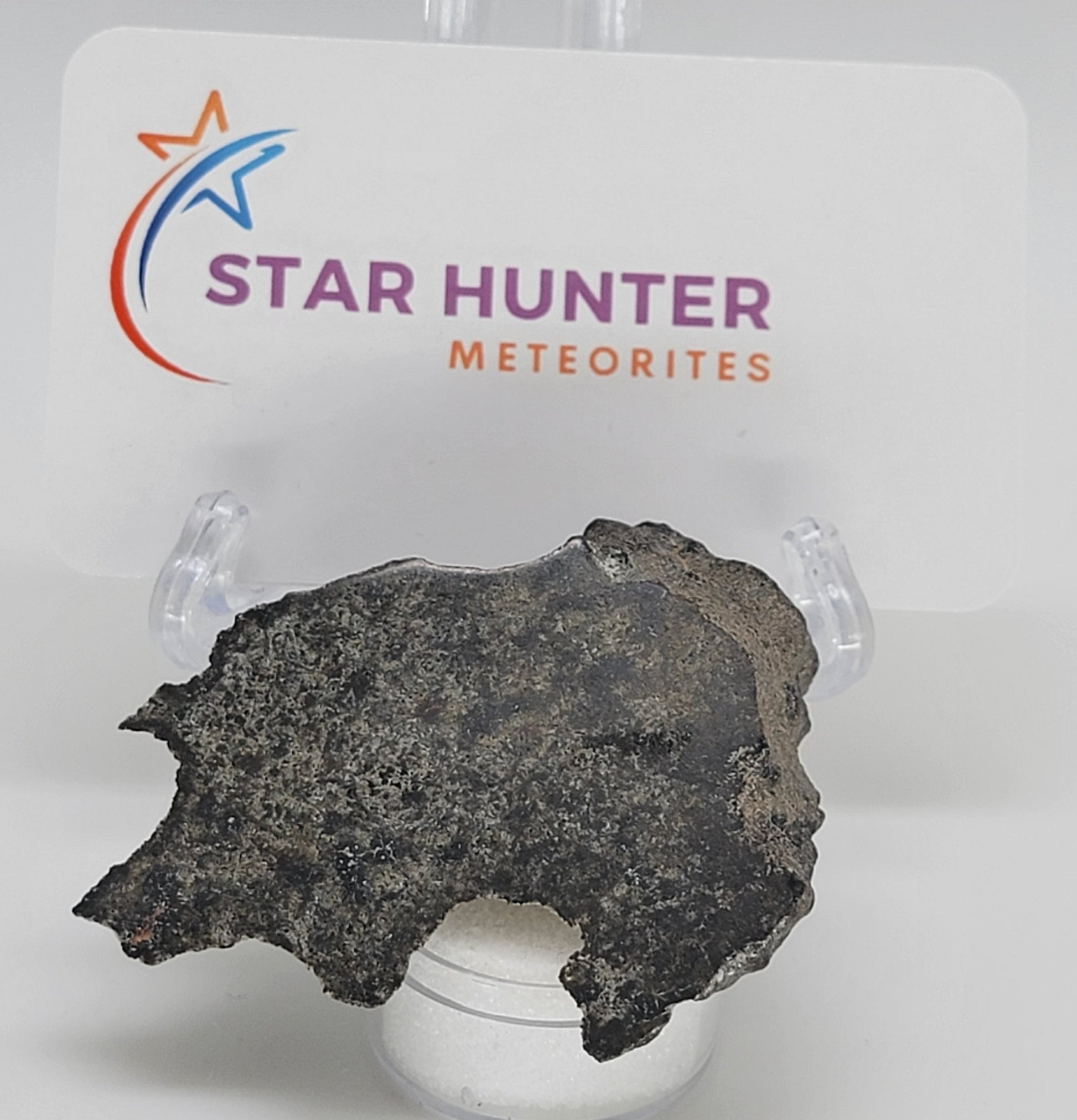This is a beautiful end cut of shergottite Martian. Shergottites is the most abundant (50 out of 61) and the most diverse of the Martian meteorite subgroups. They are commonly divided into three types: basaltic, lherzolitic, and olivine–phyric (or olivine–orthopyroxene–phyric) shergottites. Lately, it's been very difficult to find. The total known weight of NWA 14714 is 4 kilos. It was found in Algeria back in 2021. Not all Martian is green like this which makes it one of the more sought-after Martian meteorites. It was officially classified by Dr. Carl Agee as Martian basaltic shergottite. This is your chance to own a real piece of the red planet. Mars is home to the biggest volcanos in our solar system!