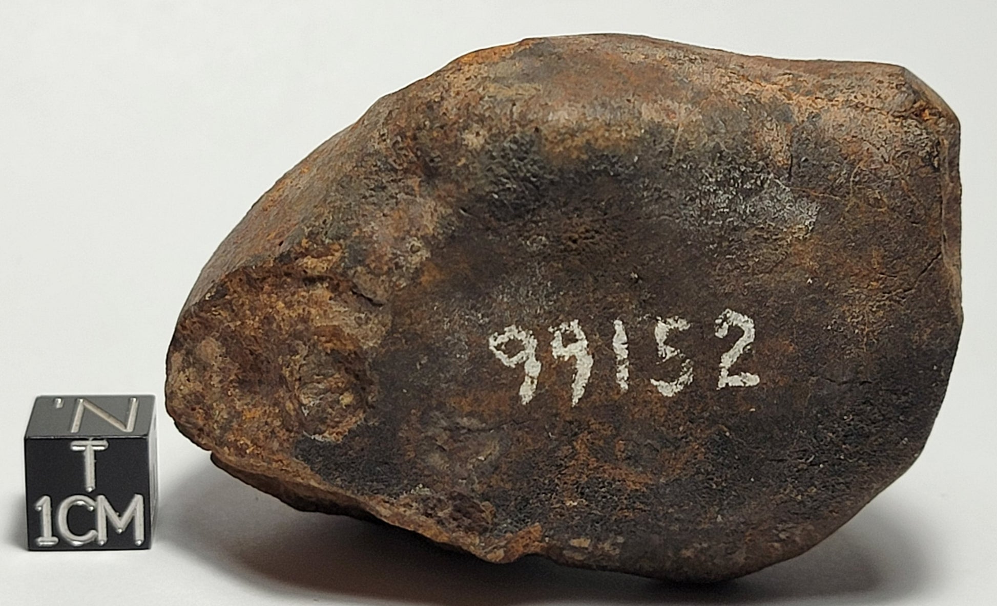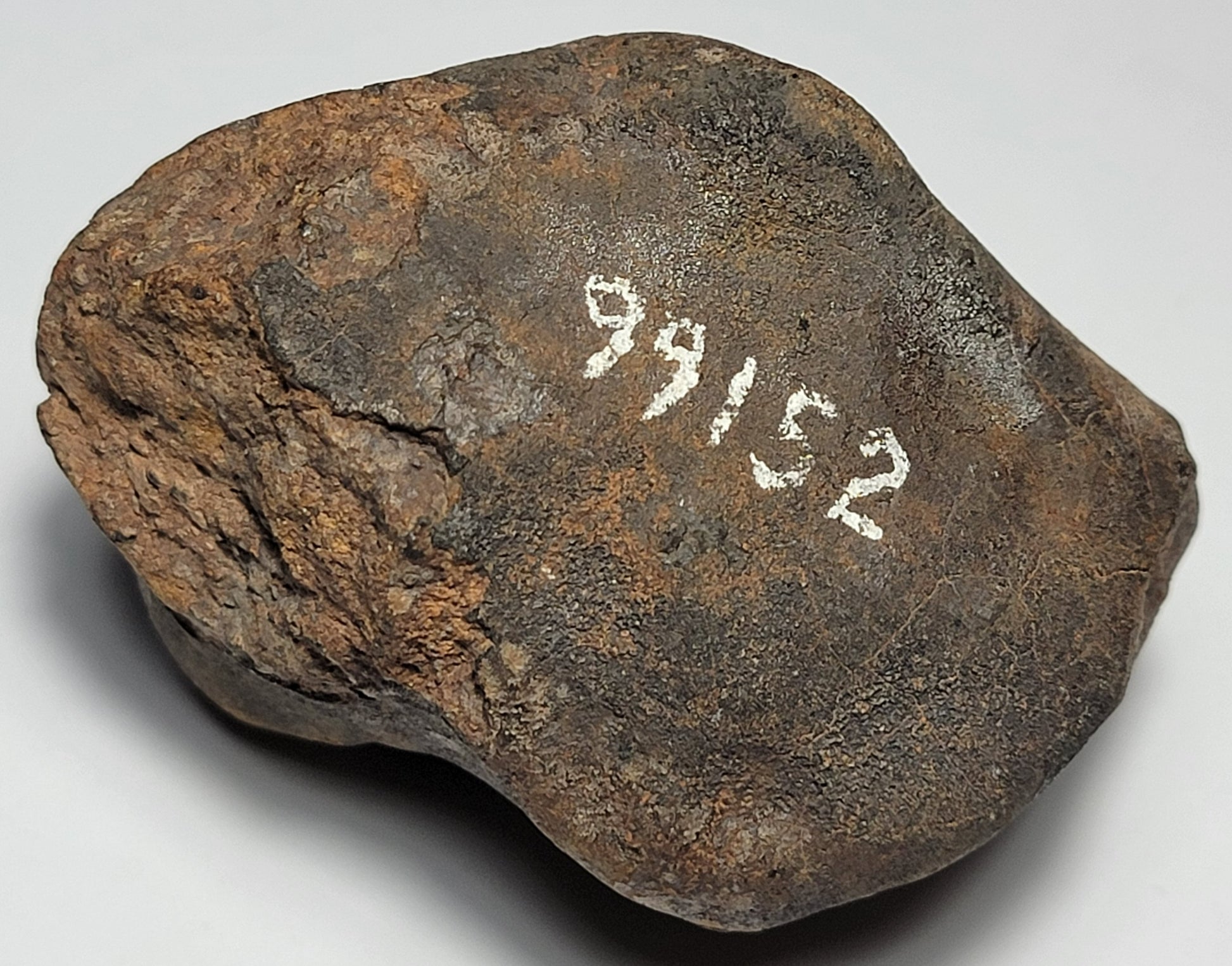 This one is called Sahara 99152. Long ago, before the Meteoritical Bulletin existed, there wasn't a classification system for meteorites. During the mid-to-late 1990s, the Labenne family (Marc and his sons Jim and Luc) would hunt the Sahara Desert in Northwest Africa. With each meteorite they found, they painted a field number on it which was their way of cataloguing each one. This one has 99578 painted on it. It means it was found in 1999 and it's the 668th meteorite they found on that year's expedition. This is definitely a beautiful piece of meteorite history that has been preserved and is looking for a new collection to call home.